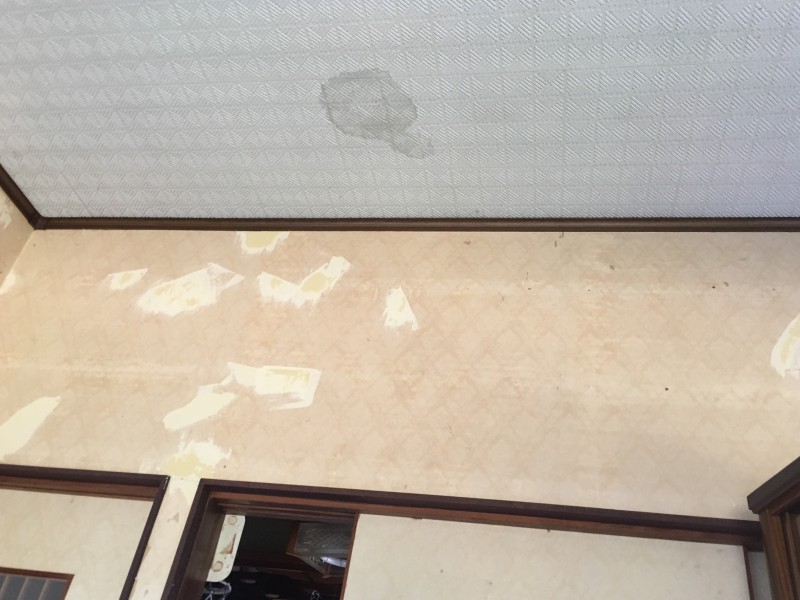 今日は幾度もお仕事の御依頼頂いておりますリピーター様宅のリビングルームの壁紙の張り替えと天井のシミの修復工事です。